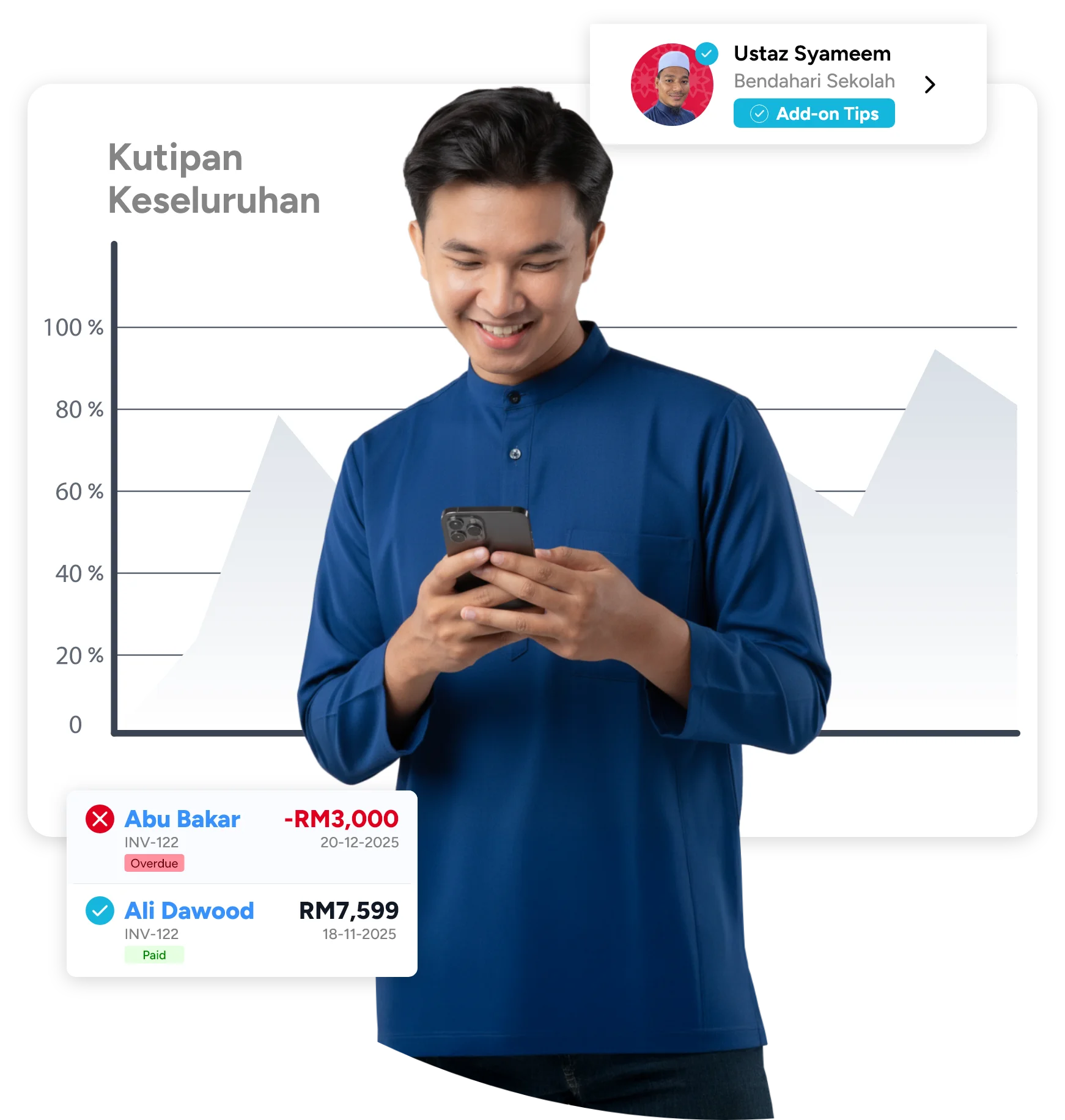 Terima bayaran, urus kutipan dan jana laporan dalam satu platform.